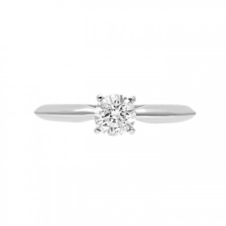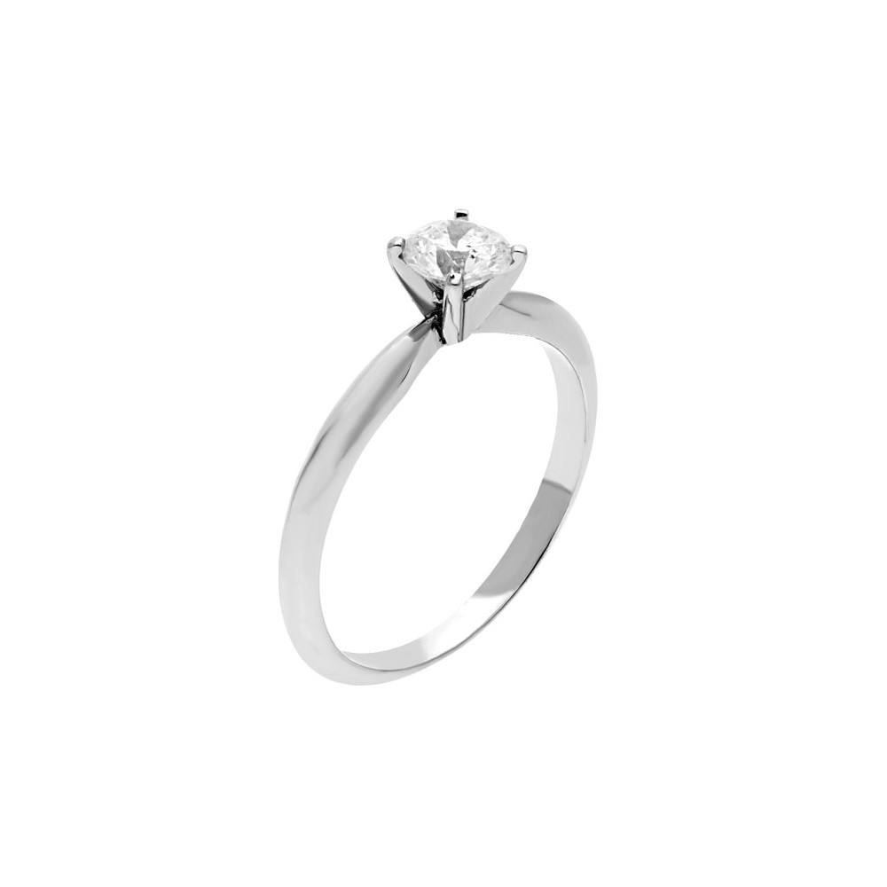 Anillo solitario en oro blanco con un precioso diamante en corte redondo.