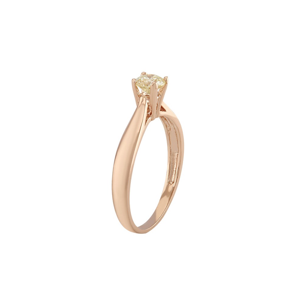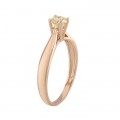 Anillo solitario en oro rosa de cuatro uñas con diamante en corte redondo.