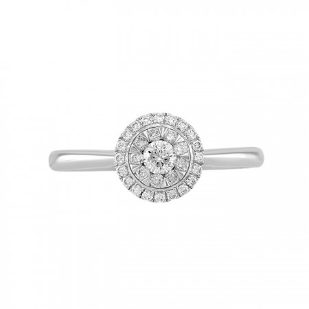 Anillo solitario en oro blanco estilo ilusión con brillantes